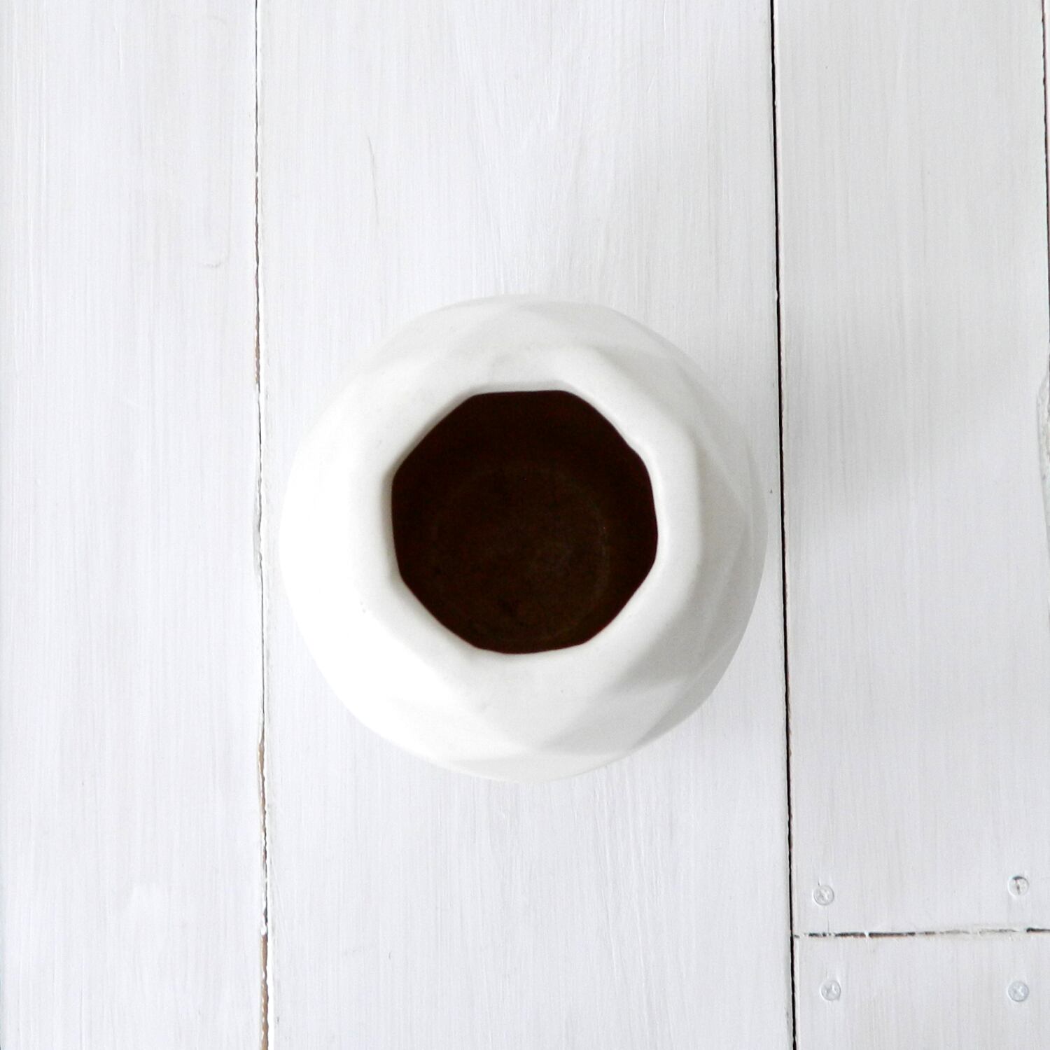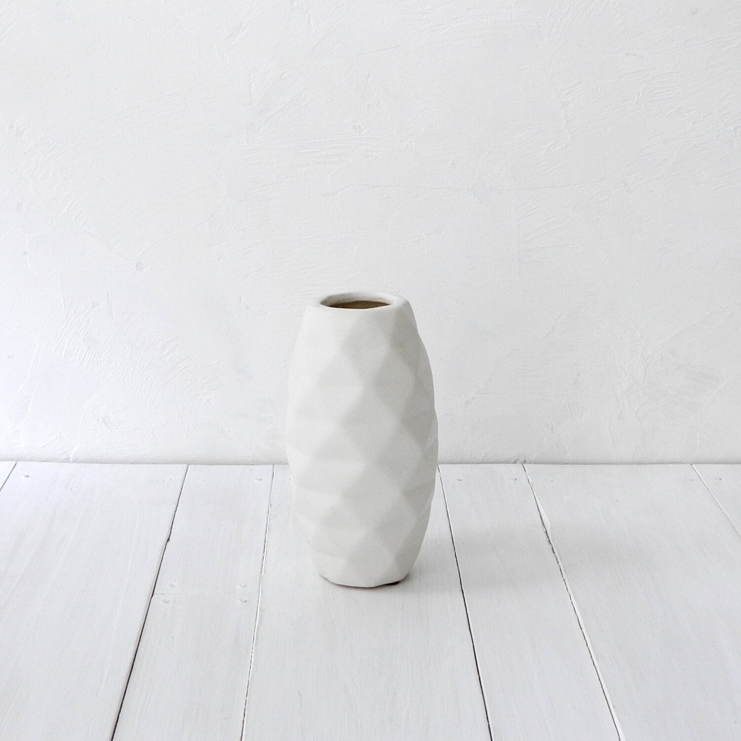 幾何学模様の陰影が綺麗なマットホワイトのフラワーベース。