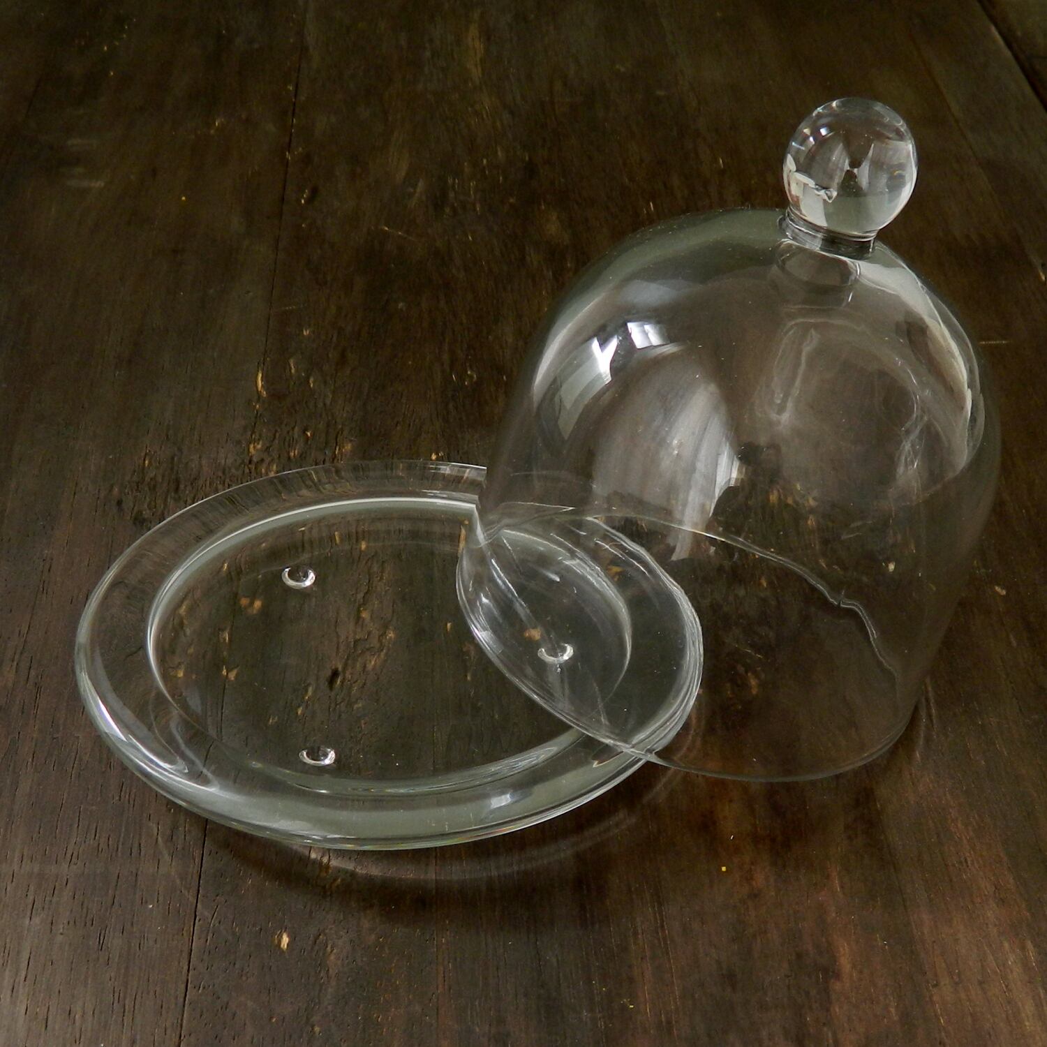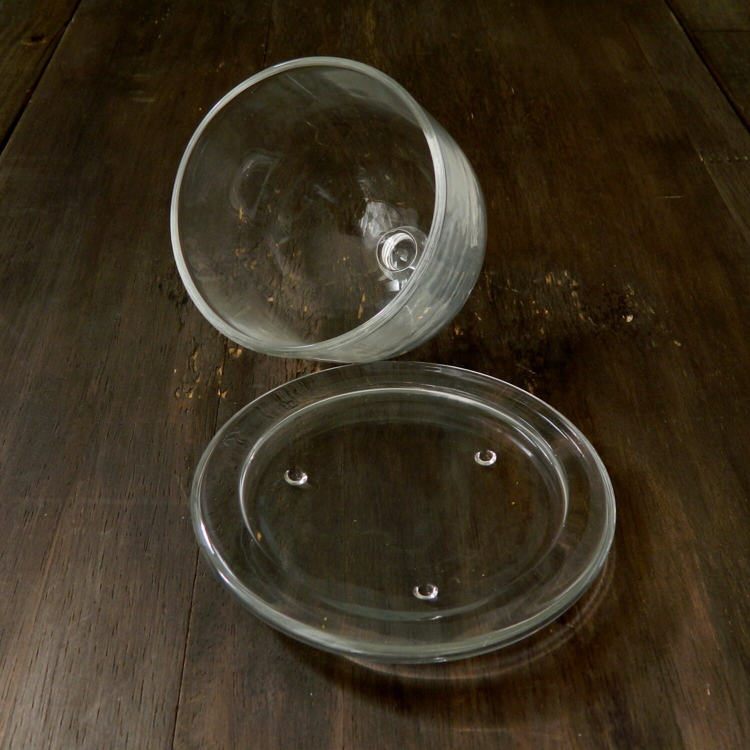 小ぶりのガラスドームとソーサーのセット。