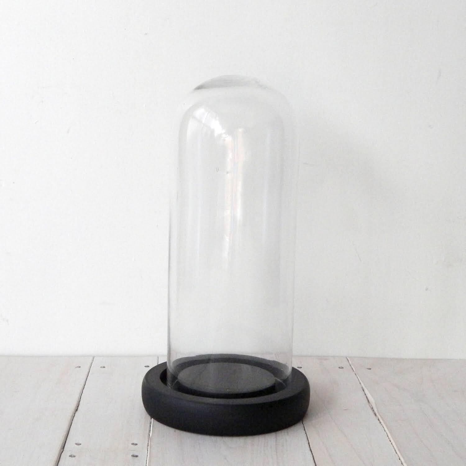 木製ベースの黒でシックな印象のドーム型ガラスケース。