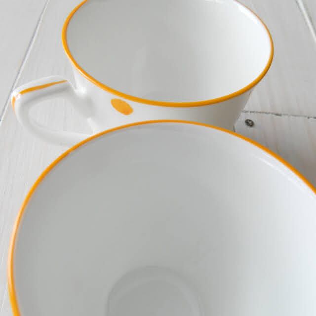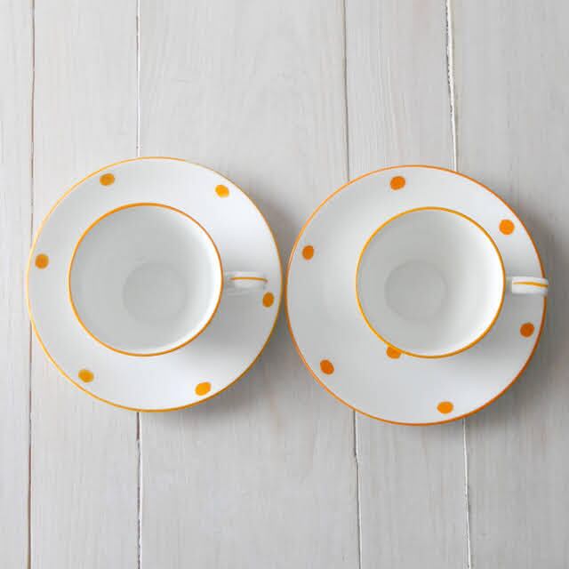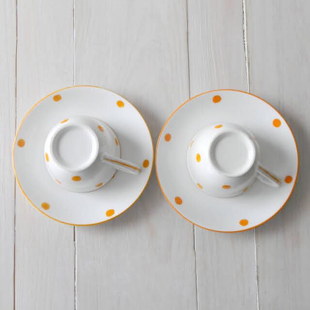 オレンジのドットが可愛いカップアンドソーサー2客セット。