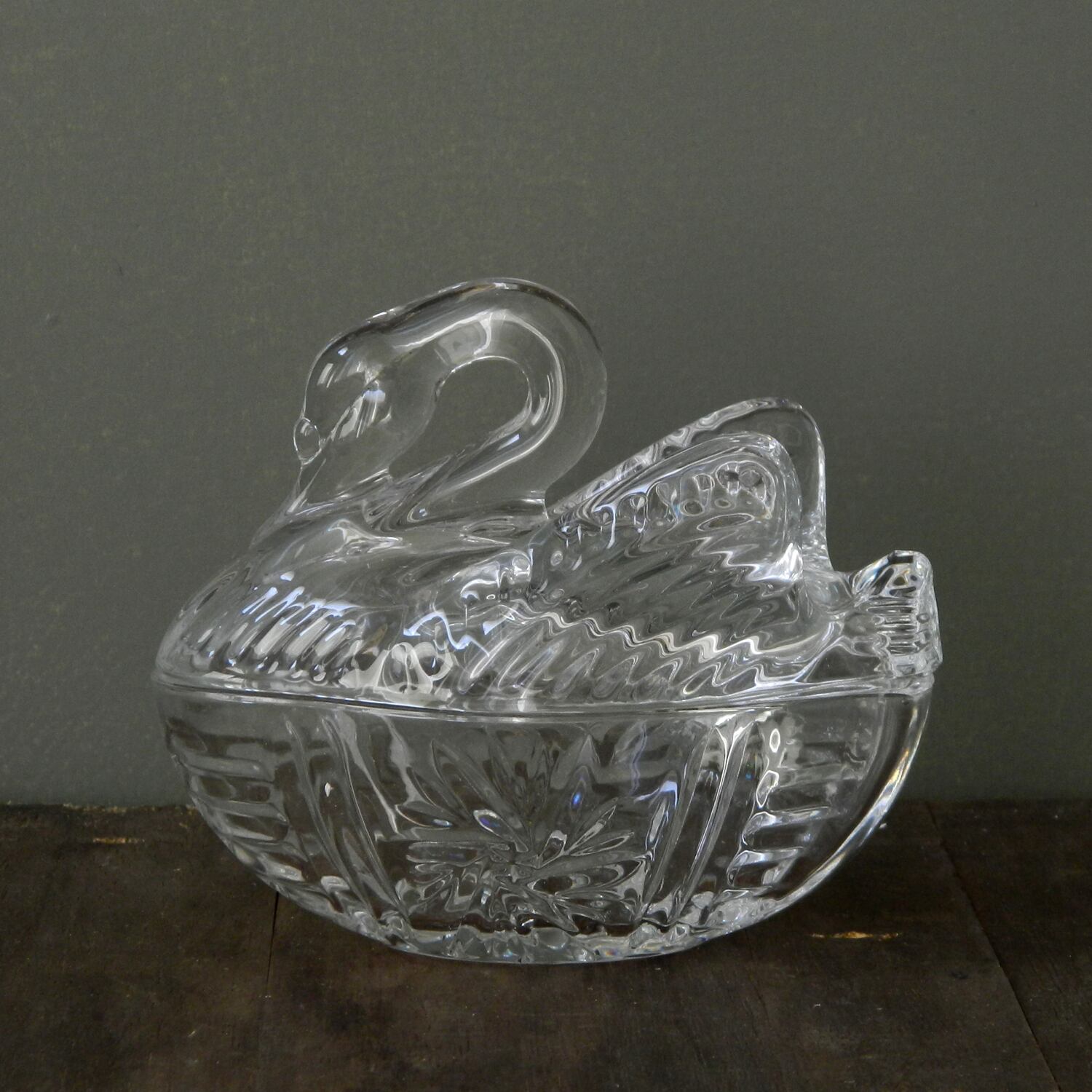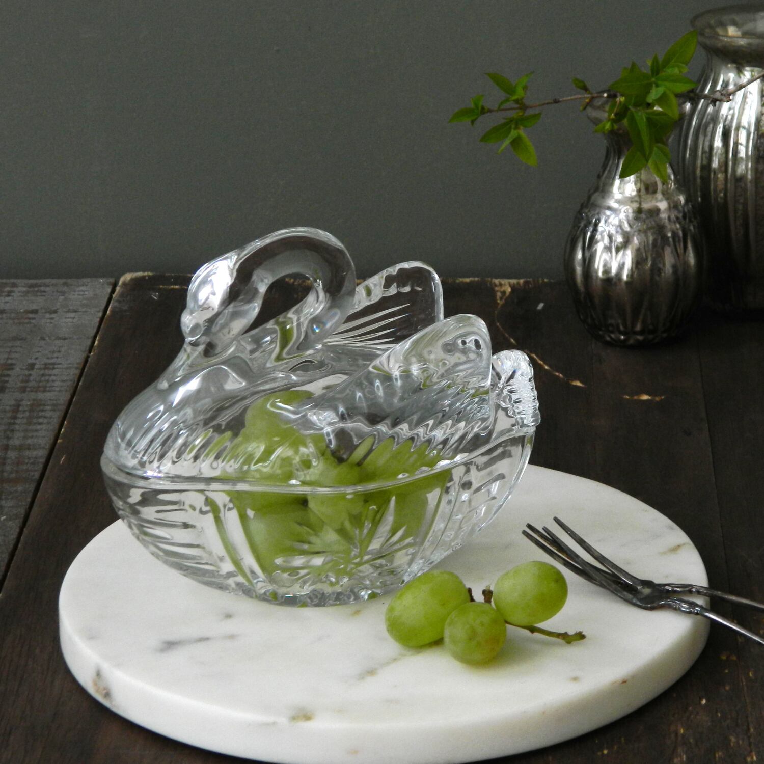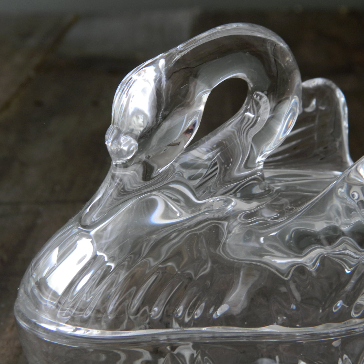 首のラインや羽の模様・ボウルのカット柄などガラスの透明感が美しい商品です。