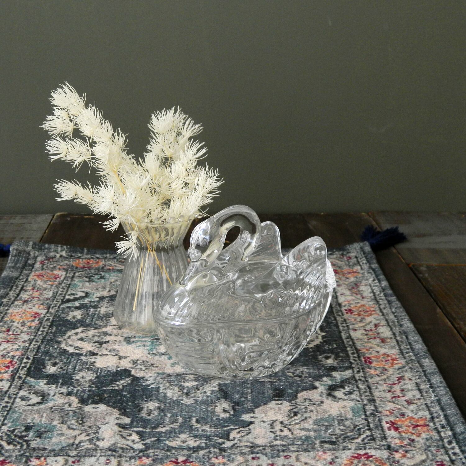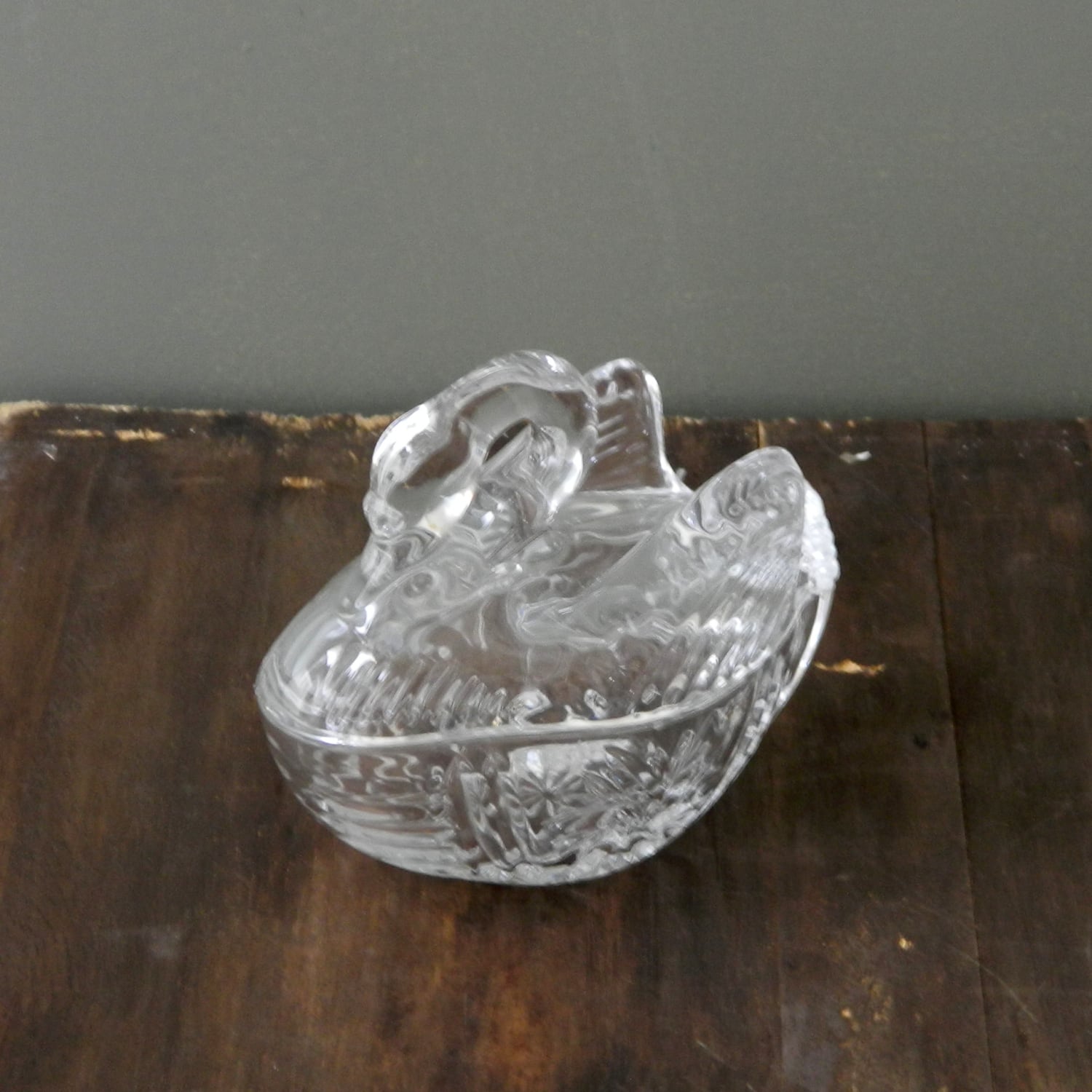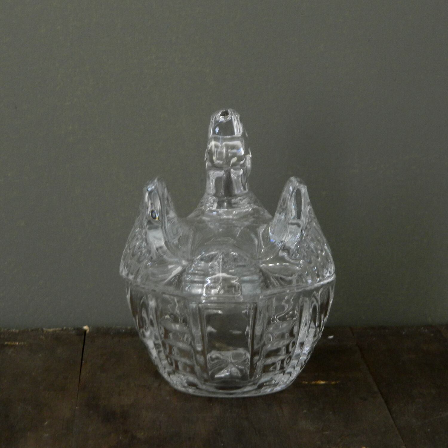 首のラインや羽の模様・ボウルのカット柄などガラスの透明感が美しい商品です。
