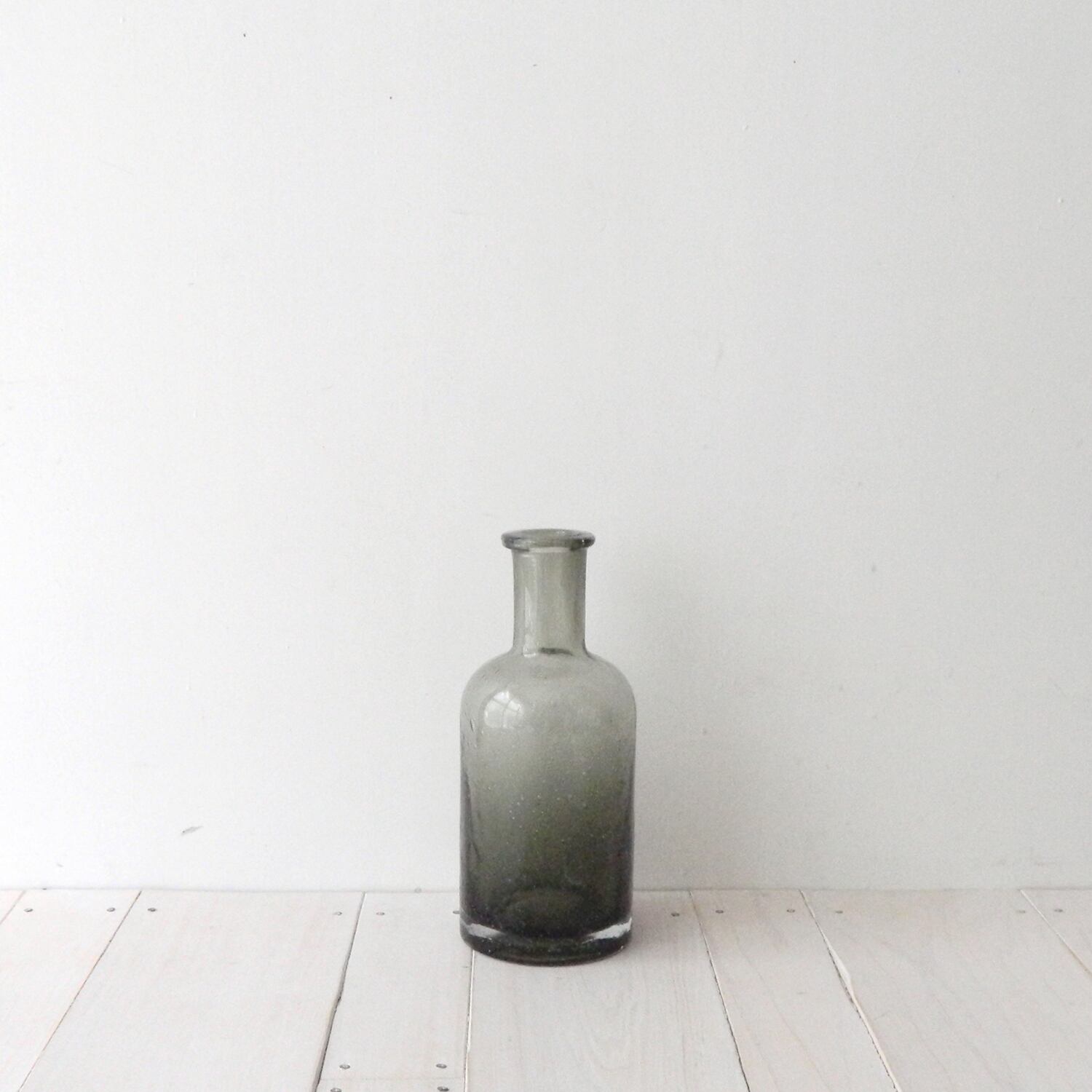 全体に気泡が入ったオリーブグレーの瓶。