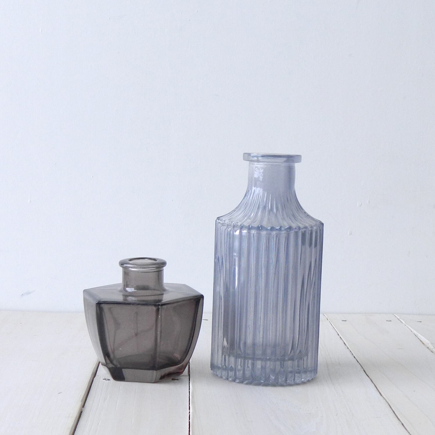 小ぶりでシンプルな形・ブルーグレー系高低差のあるフラワーベース2個セット。