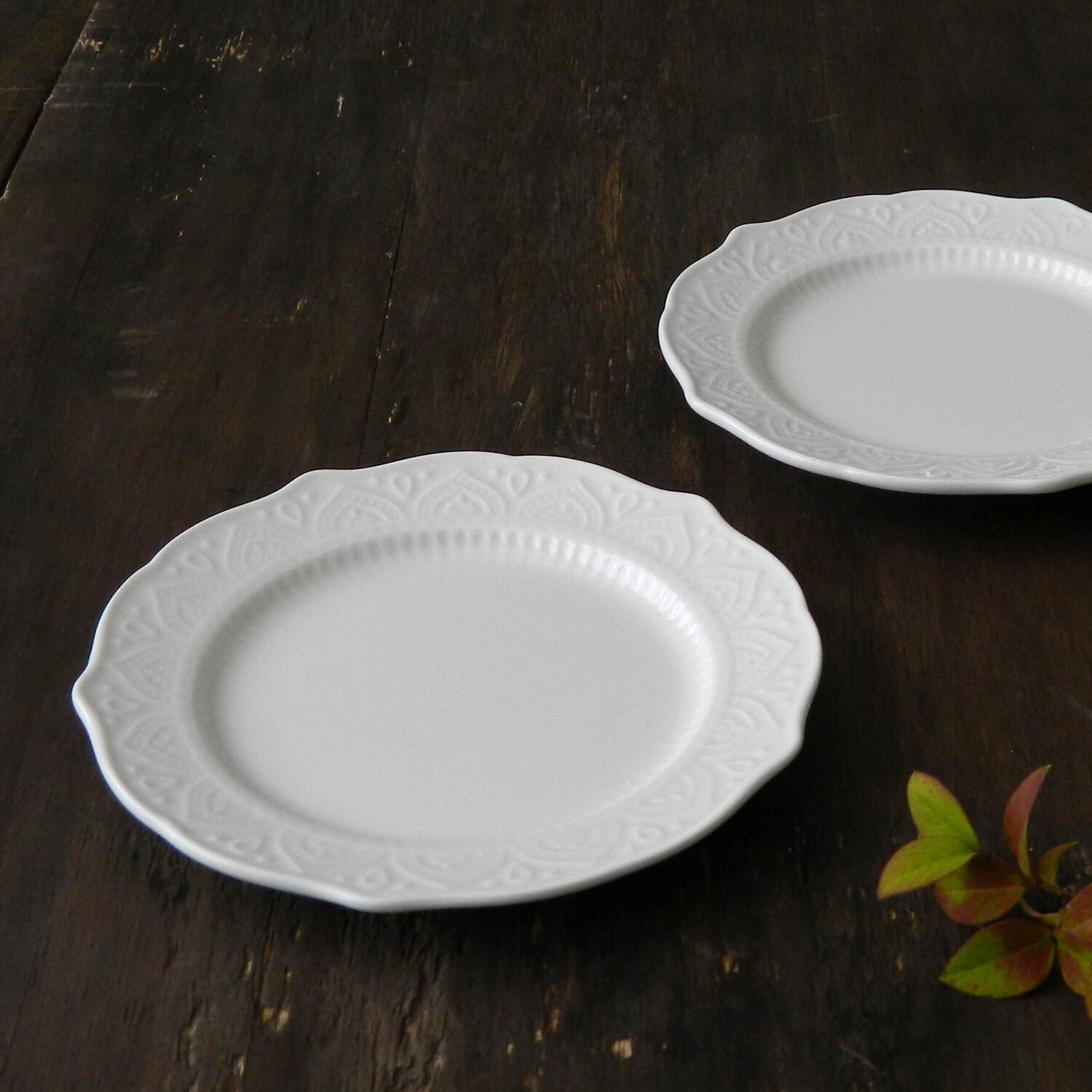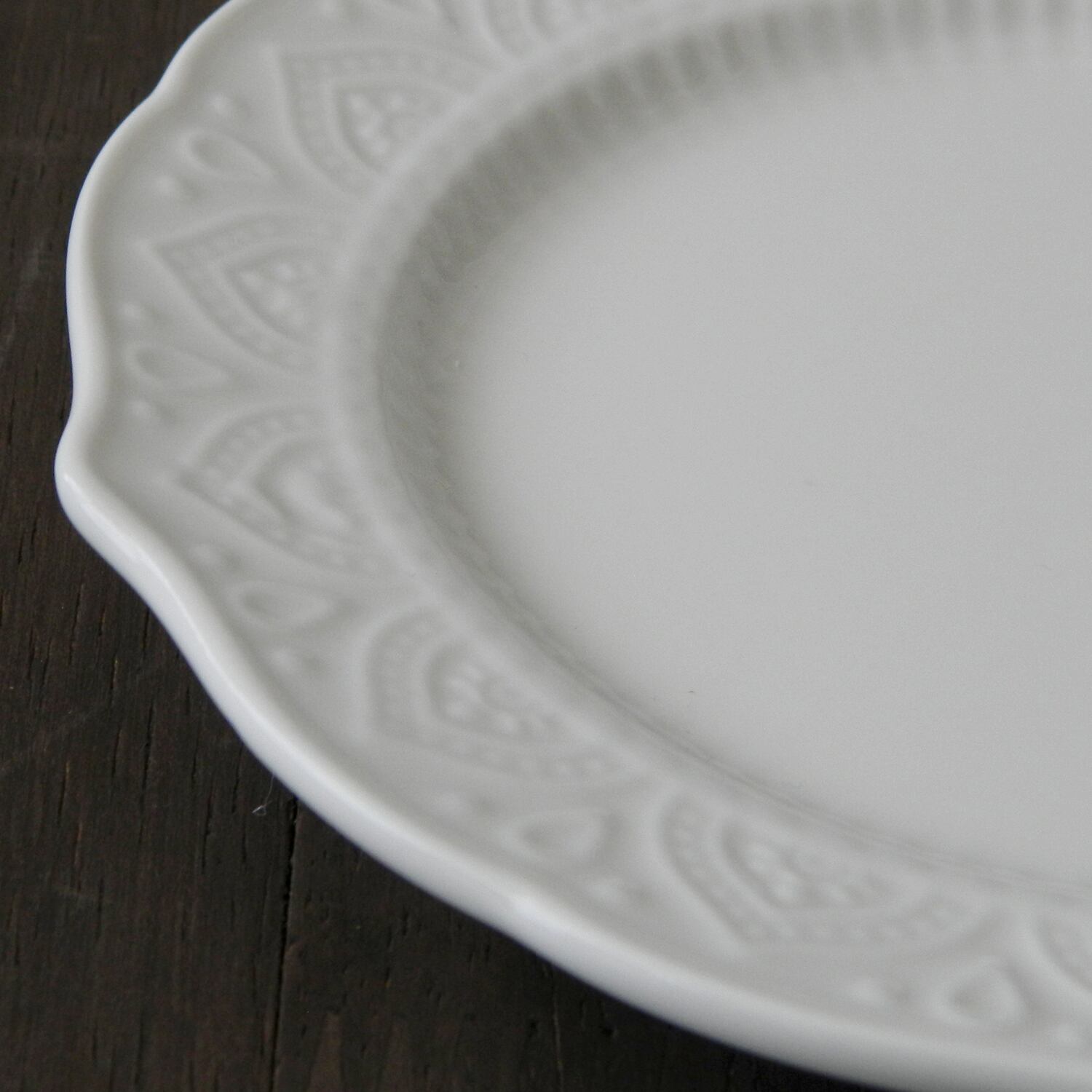 リムに入った繊細なレリーフ柄が可愛いデザートプレート。